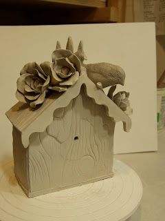 It has been a while since I have been able to add another post to the blog.  The main reason for the delay, is that I wanted to wait until I could share a few images of the clocks I was making.  Since I am a full time art professor, and full time mom, my studio time, very often, gets put on the back burner.  But, thankfully I have had a few hours here and there,  to get a couple clocks completed.  The clocks are still in their “green” stage (not bisque fired), so it will be a couple more weeks until they will be ready for the wall.  I will clean them up a bit before they are placed in the kiln.  The finishing detail? I plan on glazing them, or enameling them white.